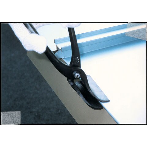 商品説明●薄板を挟み込んで曲げます。●薄板の折り返し曲(ハゼ)部をつぶします。●先が曲っています。●全長(mm):260●口幅(mm):60●スタンダード仕様 重量:600g
