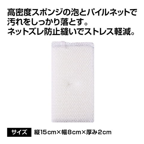 ○ナイロンパイルでコシのある洗い心地が気持ちいい。 ○軽く握ると簡単に泡立つ! ○高密度のスポンジで泡の持ちが長い。 ○ホワイトでインテリアもスッキリ