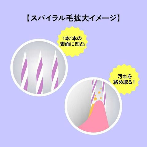 超極細毛先でらせん状のエッジが歯周ポケットに入り込んで歯垢をかき出す。
