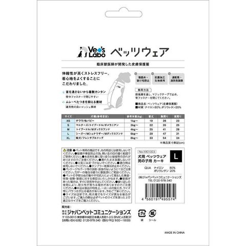 犬用 ベッツウェア 男の子用 カーキ L メーカー直送 ▼返品・キャンセル不可【他商品との同時購入不可】