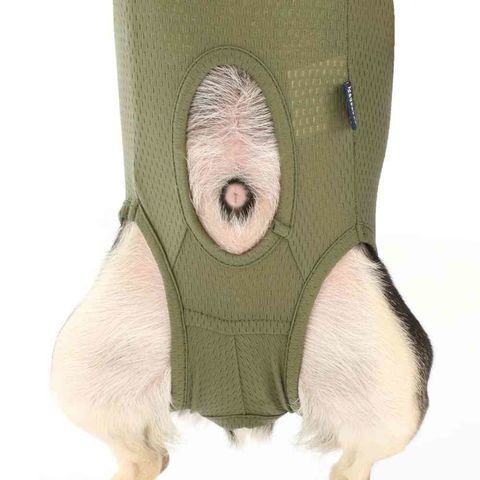 生地は伸縮性が高く通気性の良いメッシュ素材を採用しました。 ムレにくく柔らかな肌触りのため、ワンちゃんの皮膚に負担をかけずに患部をしっかり保護でき、手術後も安心してご着用いただけます。
