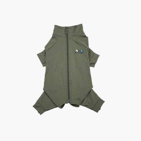 首からお尻まで全身を包み込み、デリケートな皮膚を守ってくれます。脇や鼠径部などの皮膚が薄くて傷つきやすい部分を保護できるだけでなく、お散歩中の草や虫との接触による皮膚トラブルを避けるのにも役立ちます。