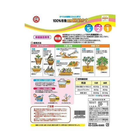 油かす、肥料、万能肥料、園芸、植物、ガーデニング、家庭菜園、庭、ベランダ、栽培、育苗、収穫、花、野菜、家庭用、純正、天然、有機