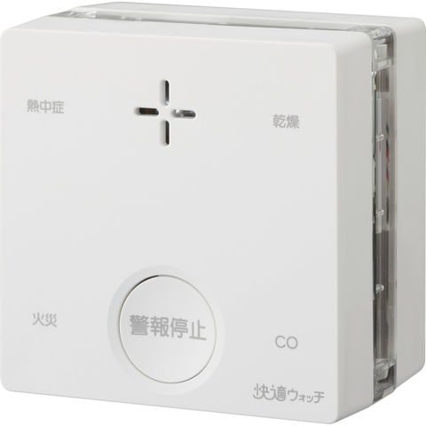 商品説明●火災(煙)警報における業界初「CO反応式」です。●一酸化炭素(CO)を検知すると、煙センサの感度を高め、火災をより早くお知らせします。●わずか0.01%を見つけ出す高性能な一酸化炭素センサを搭載しています。●一酸化炭素濃度0.01%を検知すると注意報でおしらせします。●温度と湿度のセンサを搭載し、熱中症になりやすい環境や乾燥している環境をおしらせします。●付属の専用リチウム電池で約10年間使用可能です。●幅(mm):75●奥行(mm):52●高さ(mm):75●色:ホワイト●摘要:熱中症、乾燥おしらせ機能付●住宅用防災警報器(特例基準:CO反応式)検定合格品●一般財団法人日本ガス機器検査協会検査合格品 質量145g