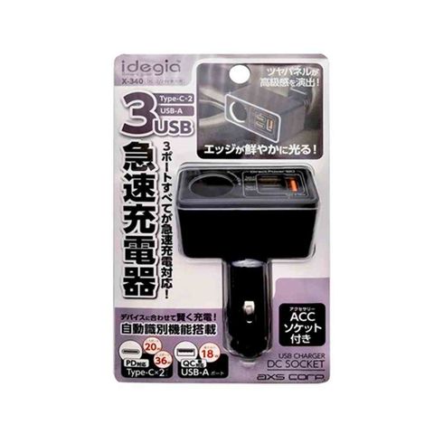 ●3USB(Type-C×2(PD)+USB-A(QC etc))で様々なデバイスが同時に充電できる。DC12V/24V兼用カーソケット付き※USBケーブルは付属していません。