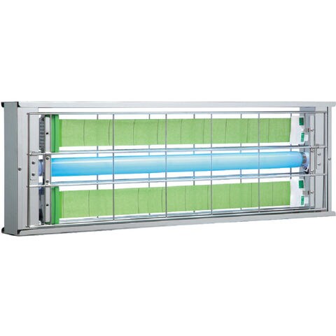 商品説明●はく離紙タイプの一般的な虫とり紙に比べて約2倍の捕獲力です。●格子の取付けが簡単です。●電撃殺虫器で捕れない小さな虫も捕獲できます。●使用時で2年間、未使用(カートリッジ内収納)なら5年の他社にない長寿命の捕虫テープです。●電撃殺虫器のように設置場所を法律で制限されていないので、設置場所を選びません。●通常の蛍光灯の130倍の誘虫効果のあるライトを搭載しています。●捕虫テープで飛翔昆虫を確実に捕獲するため、電撃殺虫器のような耳障りの悪い高圧電流によるバチバチという音や死骸の飛散もなく安全無害です。●有効面積([[M2]]):30~50●電源(V):単相100●消費電力(W):20●誘引方法:光●捕虫方法:粘着式●適合捕虫紙:S-20●幅(mm):690●奥行(mm):75●高さ(mm):230●電源コード長さ(m):1.8●誘引タイプ:両面●誘虫ランプ:FL20SBL、20W(1灯)●目隠し:表:なし 裏:なし●標準消費電力料金(円/h):0.54●標準消費電力料金:0.54円/h●捕虫テープ:S-20(2個使用)●捕虫灯20W一灯 質量2.4kg