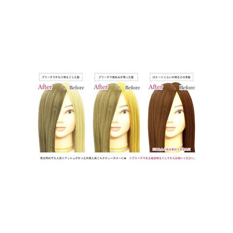 ●本品は食べ物ではございません。●乳幼児の手の届かない場所に保管して下さい。●眼に入った場合は、直ちに水かぬるま湯で洗い流し、眼科専門医に診断を受けてください。●使用中や使用後に刺激などの異常があらわれた時は、使用を中止し皮膚科専門医にご相談ください。●皮や手肌、爪、衣服、染色系のシンクなど、髪以外に染料が付着した場合、染料が落ちにくい場合があります。●黒髪には色は入りません。