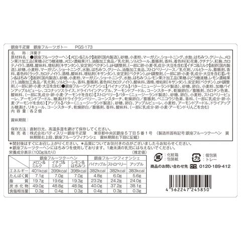 ●内容量銀座フルーツクーヘン(メロン&ミルク、イチゴ&ミルク、レモン&はちみつ)3種各2個、銀座フルーツフィナンシェ(パイナップル、ストロベリー、アップル)3種各2個