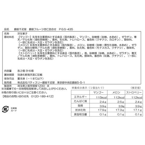 ◆銀座千疋屋 銀座フルーツ杏仁詰合せ6個×1箱 ◇メーカー直送▼返品・キャンセル不可【他商品との同時購入不可】