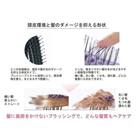 商品説明ブラシ先端部にアルガンオイルを含浸させ、ブラッシングするたび髪にしっとりとした潤い感を。さらにトルマリン加工を施し、ブラッシング時にキューティクル層の保護も期待できます。プロの使用感を自宅で楽しめるヘアブラシです。風の循環を生む独自の通気構造!循環性の高い通気構造で、ブロー時間を短縮。さらに、熱がこもらないので、頭皮やキューティクルのダメージを抑えます。簡単に水洗いもできるので、いつでも清潔な状態を保ちます。二つの曲線が作り出すツヤ髪!頭皮と髪のことを考えた2つの曲線(ダブルCカーブ)が特徴。髪のボリュームを与えやすく、頭皮にフィットしやすいので同時にスカルプケアも可能です。