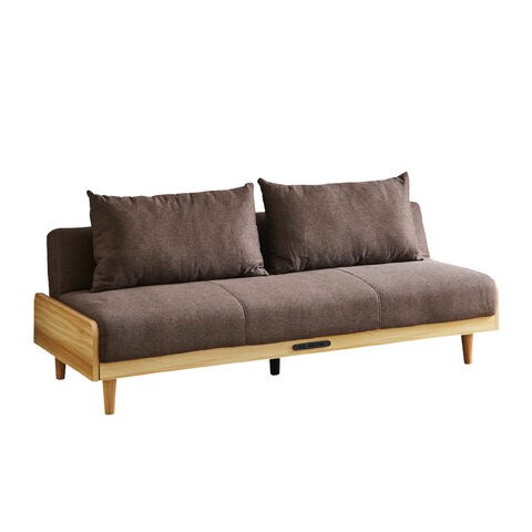 ソファ ソファーベッド ベッド リクライニング 木肘 北欧 2口コンセント USBポート