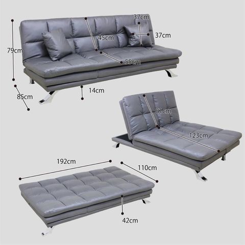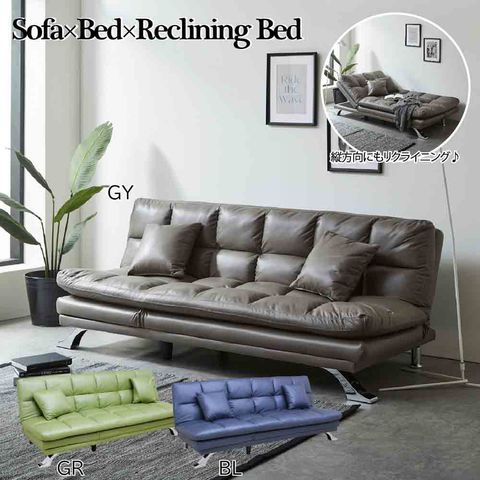 ●引っかき傷に強いファブリックレザー生地を使用したソファーベッド。●背もたれ部分は、3段階ギア仕様のソファーベッド。●ソファーとして、リクライニングベッドとして、ベッドとしてもご利用可能な3WAYの機能付き。●脚を外せばロータイプとしてもご利用可能。●脚高:14cm。●カラー:グリーン色。●生産地:中国。