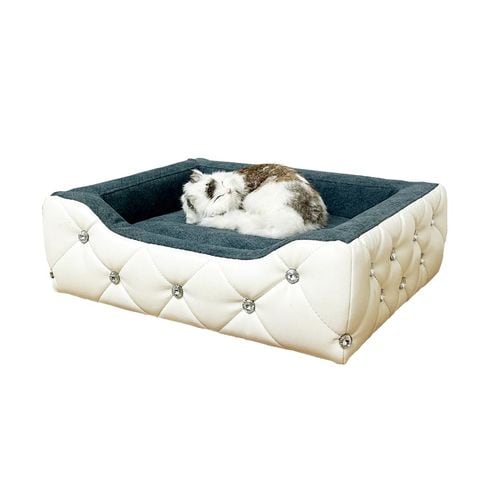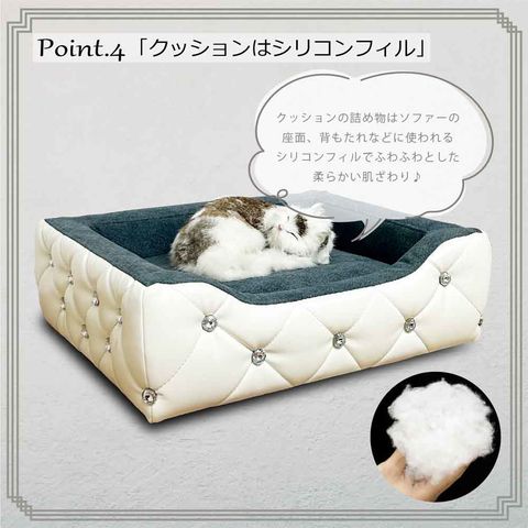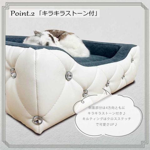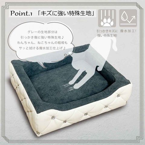 商品説明●光沢のあるバイキャストPVCを採用した姫系ペットソファー。●人が使うソファーメーカーでの生産商品なので心材は木枠仕様でガッチリ・丈夫。●正面と側面はキラキラストーン付きで可愛さアップ。●グレーの内部生地は撥水加工なのでワンちゃん、ネコちゃんの粗相も楽々サポート。