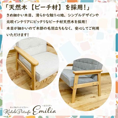 商品説明●木肘タイプソファーを忠実に再現したペットソファー。●木部は、きめ細かい木目のビーチ材を採用。●耐荷重30kgでキッズソファーご利用可能。●ベージュ色。