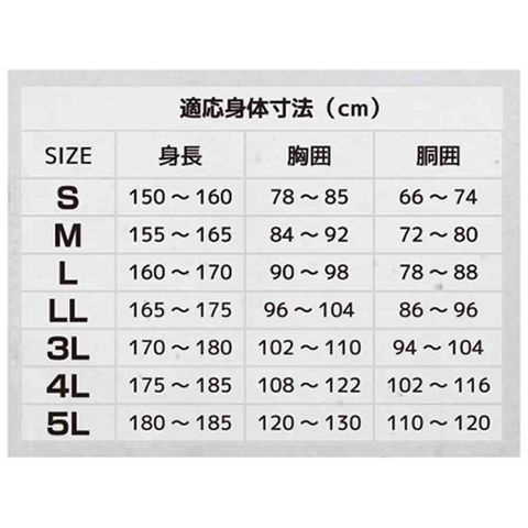 ●適応胸囲:102~110(cm)。