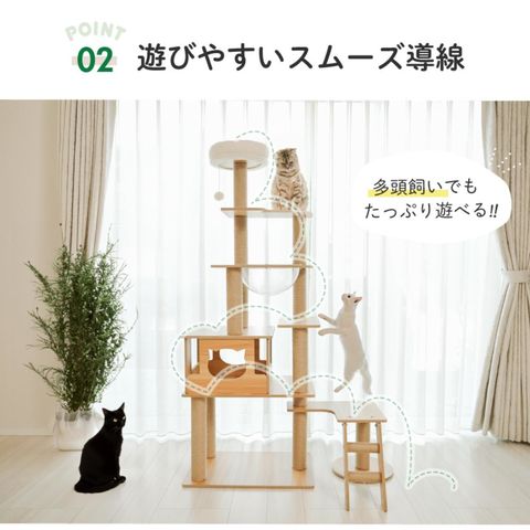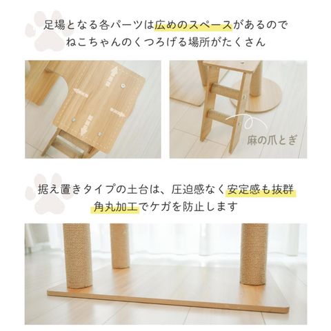 ・木製だから耐久性も高く、汚れてしまってもお手入れ簡単。 お部屋のインテリアにも合わせやすく、ねこちゃんとの生活をより一層グレードアップします。