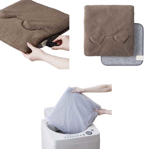商品説明〇モコモコしたカバーのポケットに足や手を入れたり、お尻・お腹・背中を暖めたりあんかの代わりにもと、マルチに使えるクッションタイプのヒーター。本体側のコードが従来品の2倍の長さに、付属のコントローラーホルダーを装着して使うことで、さらに使い易くなりました。〇切り忘れても安心、自動OFFタイマー付き。(12時間自動OFF、任意6/4/2時間設定可能)〇操作しやすいスライド式温度調節。(暗い部屋でも見やすいバックライト付き) 〇急に冷え込んでも快適、室温センサー内蔵。(室温が約23度以下になると、設定から自動で約3度温度アップ) 〇取扱説明書の記載手順に従いダニ退治ができます。 〇カバーは丸洗い可能。(洗濯ネットを使用して洗濯機でも洗えます)●定格/交流100V-50W 50-60Hz共用 ●コード長/電源側 約1.9m、本体側 約1.2m ●表面温度/強:約42度 、中:約35度、弱:約23度 ●電気代(1時間あたり)/強:約0.3円、中:約0.2円、弱:約0.1円(1kWh当たり31円で算出)●重量/約0.7kg ●保証期間/お買上げ日より1年