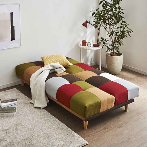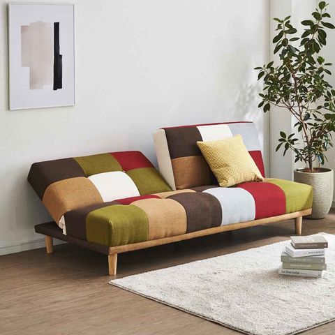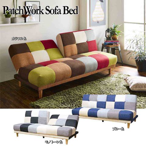 商品説明●お部屋の雰囲気が明るくなるパッチワークソファーベッド。●2WAYタイプなので2人で座る際、お好みの角度で調整可能。●背もたれリクライニングは3段階ギアを採用。●座面高:36cm。●脚高:14cm。●ベッド時サイズ:幅100×長180×高36cm。●カラー:カラフル色。●生産国:中国。