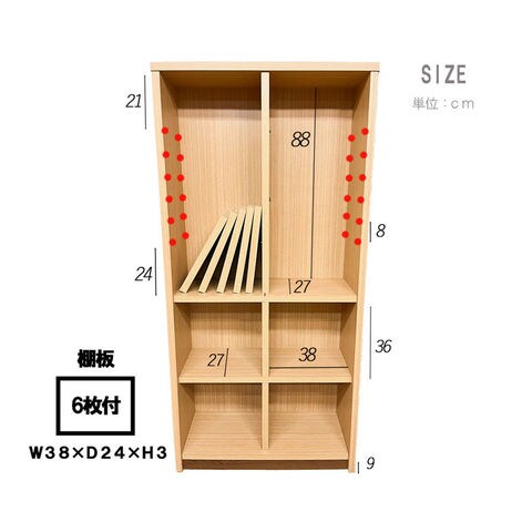 商品説明●すぐに使える完成品で組立不要。●天面、側板面材には単板風の3mm厚の面材使用で高級感があり。●家具の産地【大川市】にて生産。●側面は台形でしっかりとした安定感を実現。●可動棚は、6枚付きで自由自在に収納可能。●可動棚耐荷重:10kg。●カラー:ナチュラル色。●生産国:日本。