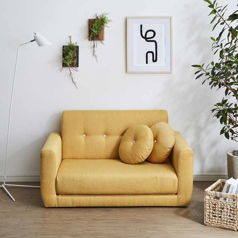 ●引っかきキズに強い特殊生地を採用したペットのいるご家庭でも安心してご利用可能。●お部屋のシーンに合わせてソファーやソファーベッドに早変わりの多機能ソファーベッド。●脚を外せばロータイプとしてもご利用可能。●座面高:38。●ベッド時サイズ:幅120×長194×高54cm。●ベッド時座面高:15cm。●ベッド内寸:幅94×長189cm。●カラー:イエロー色。●生産国:中国。