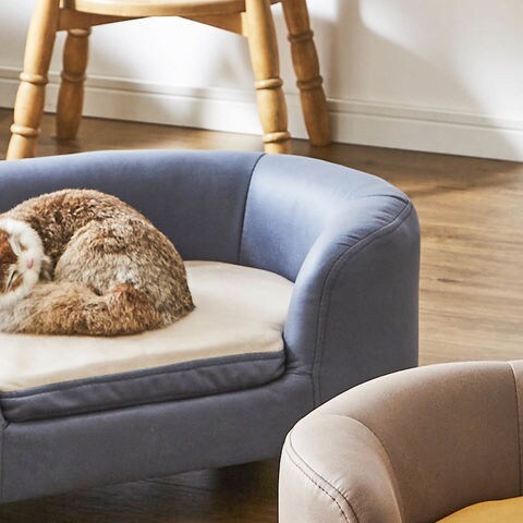 商品説明●引っかき傷に強い特殊生地仕様を採用したペットソファー。●人が使うソファーメーカーでの生産商品なので心材は木枠仕様でガッチリ・丈夫。●座面リバーシブル式でその日の気分で模様変え。●座面部分はカバーリング式で手洗い可能、ワンちゃん、ネコちゃんの粗相も楽々サポート。●汚れてもサッと拭けるお手入れ簡単撥水加工仕上げ。●座面高:13cm/18cm。●カラー:ブルー色。