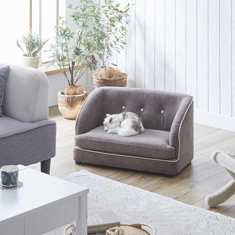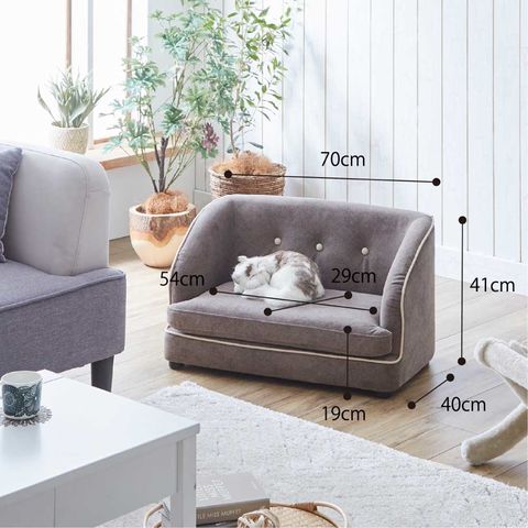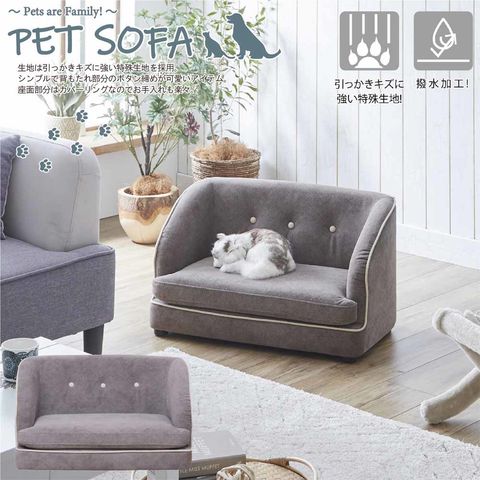 商品説明●引っかき傷に強い特殊生地仕様を採用したペットソファー。●人が使うソファーメーカーでの生産商品なので心材は木枠仕様でガッチリ・丈夫。●背もたれ部分のボタン締めがキュートなシンプルデザイン。●座面部分はカバーリング式で手洗い可能、ワンちゃん、ネコちゃんの粗相も楽々サポート。●汚れてもサッと拭けるお手入れ簡単撥水加工仕上げ。●座面高:19cm。●カラー:グレー色。