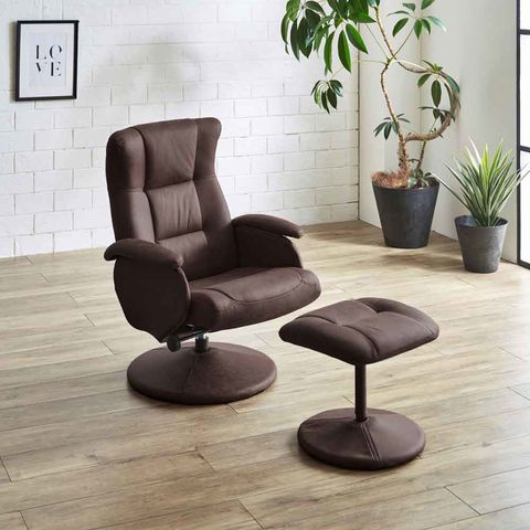 パーソナルチェアー オットマン付き ラウンジチェアー 回転式 ダークブラウン