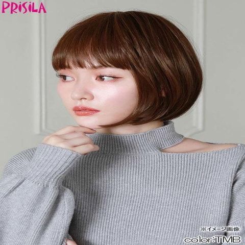 ウィッグ 耐熱ウィッグ フルウィッグ ボブウィッグ モアシルキーボブ プリシラウィッグ マロンブラウン 前髪ぱっつん ナチュラルウィッグ オールウィッグ