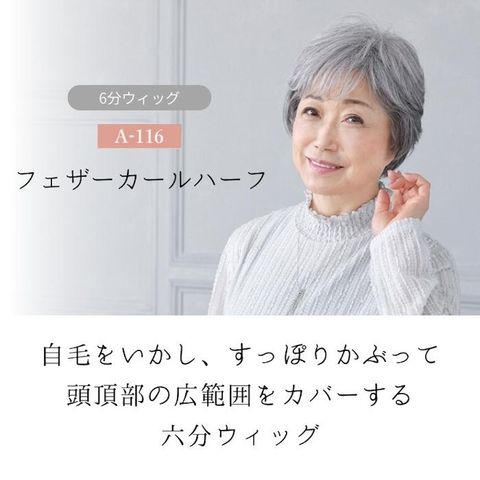 頭頂部を覆って広範囲をカバーする六分ウィッグ