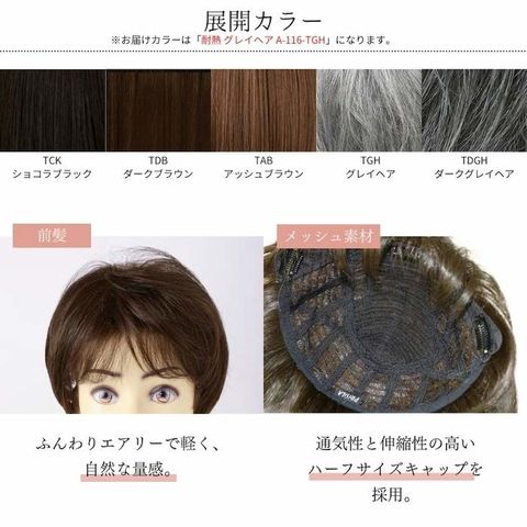 素材・材質:【新ファイバー】国内メーカー製耐熱ファイバー100% 仕様:ウィッグのタイプ(六分ウィッグ(部分ウィッグ):自毛をいかして広範囲をカバーする部分ウィッグ。クリップで固定するタイプのウィッグです。) 付属品:クリップ4個付(前側:3個、後ろ側:1個)