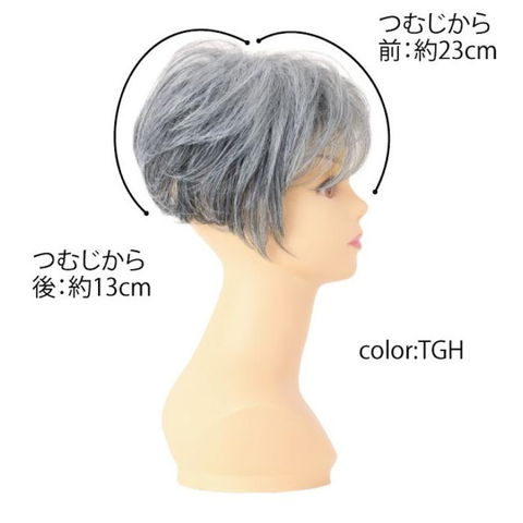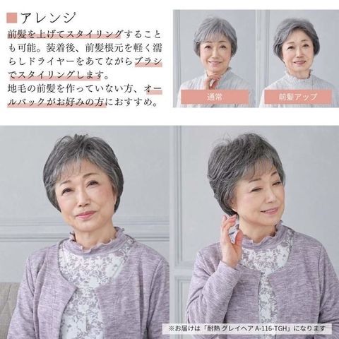 商品説明プリシラ ミセス六分ウィッグ フェザーカールハーフ 耐熱 グレイヘア A-116-TGH