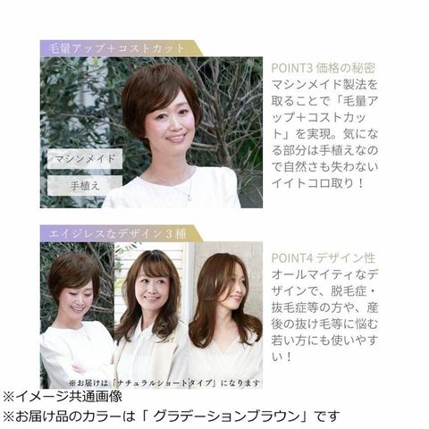 プリシラ 白髪隠しウィッグ 部分ウィッグ ナチュラルショート 耐熱ウィッグ グラデーションブラウン 前髪手植え 分け目カバー 産後抜け毛対策 シルクスキン
