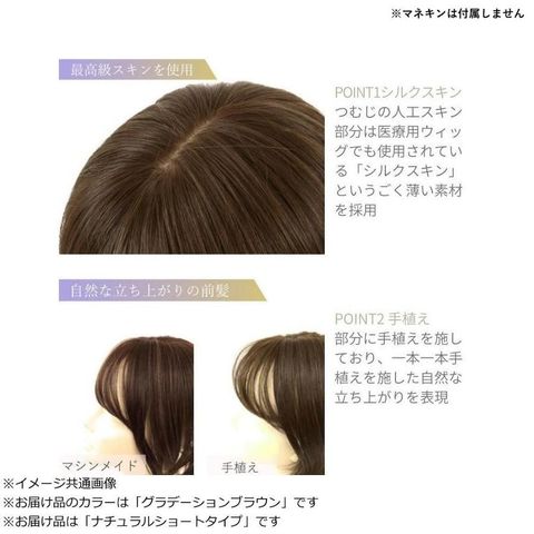 素材・材質:耐熱ファイバー100%  仕様:ウィッグのタイプ(【部分手植え】耐熱白髪隠しウィッグ、頭頂部などのカバーに最適な部分かつら※前髪生え際ネット部分のみ手植え)、人工スキン有※シルクスキン採用、クリップ3個付き(前側:黒2個、後側:茶1個)