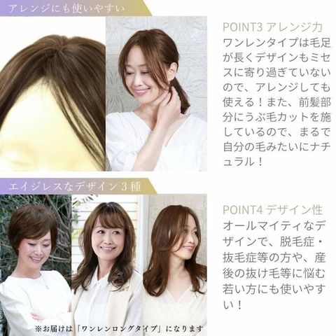 (お求めの際はよくご確認の上ご購入をお願い致します)伸びかけの白髪を隠したいあなたへ、産後の抜け毛や伸びかけカラーのカバーとしても大活躍です。気になるつむじ・分け目を広範囲にカバーしながら自然にボリュームアップできるウィッグです。