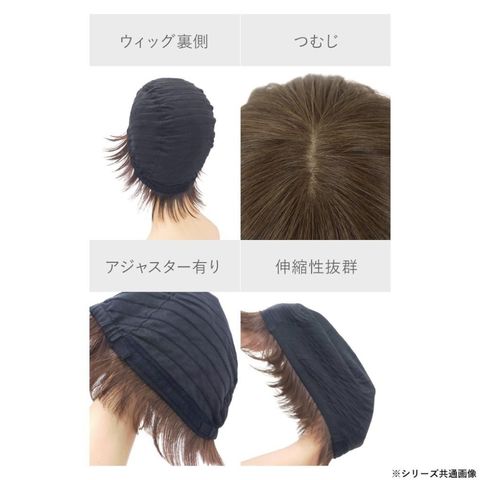 素材・材質:ナローミックスファイバー 仕様:人工スキン有、アジャスター有(面ファスナータイプ)、ウィッグタイプ:帽子タイプのオールウィッグ(フルウィッグ) 付属品:オールウィッグネット(黒)