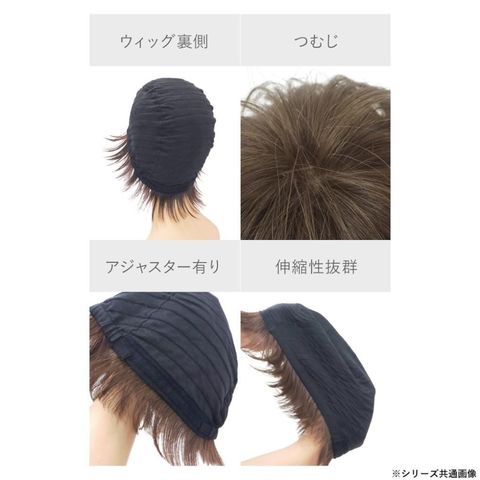 素材・材質:ナローミックスファイバー 仕様:人工スキン有、アジャスター有(面ファスナータイプ)、ウィッグタイプ:帽子タイプのオールウィッグ(フルウィッグ) 付属品:オールウィッグネット(黒)