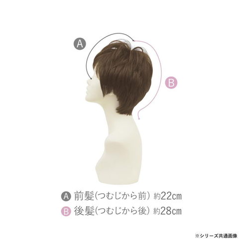 ・金属不使用のためMRIやCTスキャン時も着用可能。顔回りもスッキリした印象のベリーショートスタイル。地毛をまったく見せずにスッポリかぶる「かつら」タイプのウィッグ。従来の新ファイバーよりさらに細いファイバーをミックスし、より本物の髪に近い質感になりました。