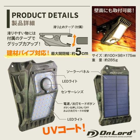 オンスクエア ソーラーLED・センサークリップライト 1台