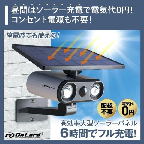 ●昼間はソーラーパネルで太陽光を効率的に充電!夜間は人感センサーで自動発光!
