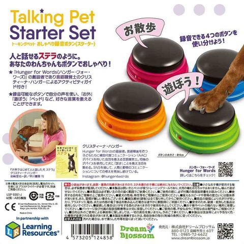 商品説明・愛犬と「お話し」できる、「トーキングペット おしゃべり録音ボタン スターターセット」で、「お散歩」「ご飯」「遊ぶ」など、日々のコミュニケーションに欠かせない音声をボタンに録音&タッチして愛犬の「言葉」をキャッチしよう!何度も繰り返し行うとことで愛犬の気持ちがわかるようになるかも!?