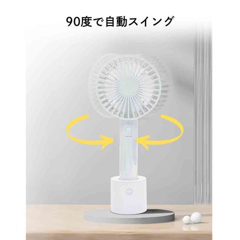 自動回転&置くだけ充電台座付きで、手持ちでも卓上でも快適な送風!USB充電式オートスイングファン。