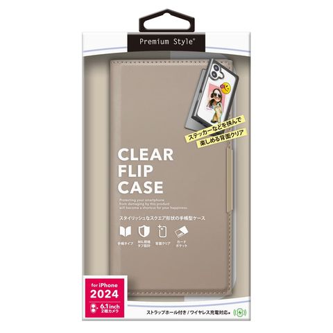 PGA iPhone16用 クリアフリップケース ベージュ PG-24ACF02BE 70g