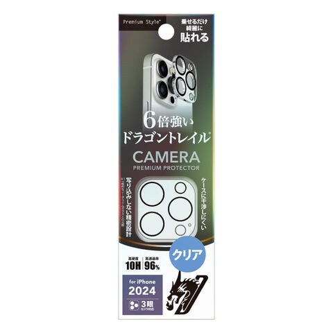 耐衝撃性に優れた「Dragontrail?」ガラスを採用したiPhone 16 Pro / 16 Pro Max 3眼カメラ用 カメラフルプロテクター クリアです。