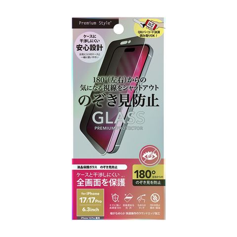 PGA iPhone 17/17 Pro/16 Pro用 液晶全画面保護ガラス 180°のぞき見防止 13g