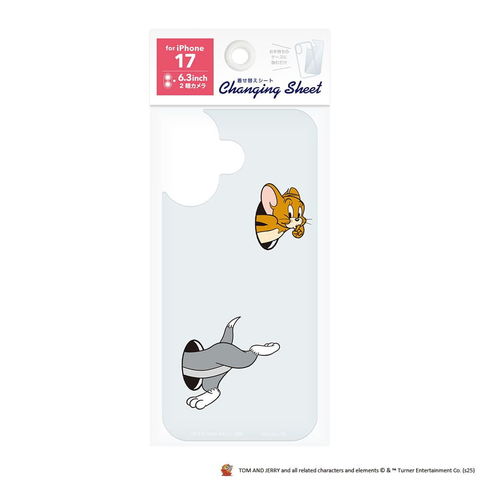 「PG-WSH25A02TAJ」は、背面が透明のケースに挟んでアレンジが楽しめる「トムとジェリー」デザインのiPhone 17用 着せ替えシートです。