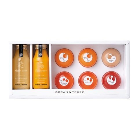商品説明本格ジュースと可愛らしいゼリーのセットです。アップルジュース180ml×1、ミカンジュース180ml×1、北海道 赤肉メロンゼリー72g×2、山形県 さくらんぼゼリー72g×2、山梨県 白桃ゼリー72g×1、福岡県 あまおう苺ゼリー72g×1