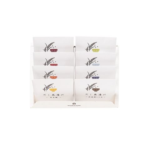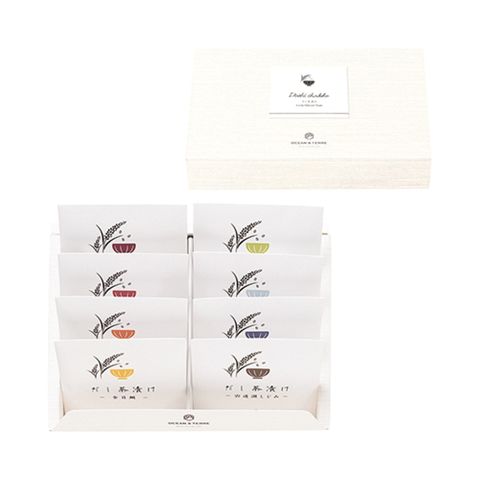 商品説明だし茶漬けの素4.5g×8、はまぐり2個×1、ずわい蟹13g×1、紅鮭1切×1、金目鯛1切×1、紀州南高梅1粒×1、うなぎの蒲焼き13g×1、銀だら1切×1、宍道湖しじみ30g×1、白煎りごま1g×8