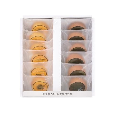 【はちみつバーム】液卵(鶏卵(国産))、小麦粉、砂糖、水飴、ショートニング、マーガリン、コーンスターチ、はちみつ、加糖れん乳/ソルビトール、乳化剤、香料、膨張剤、着色料(紅花黄、カロテン)、酸化防止剤(V.E)、(一部に小麦・卵・乳成分・大豆を含む)【ベルギーチョコバーム】液卵(鶏卵(国産))、小麦粉、砂糖、水飴、ショートニング、マーガリン、コーンスターチ、ココアパウダー、チョコレート(砂糖、カカオマス、ココアパウダー)、加糖れん乳/ソルビトール、乳化剤、膨張剤、着色料(カラメル、紅麹、カロテン)、香料、酸化防止剤(V.E)、(一部に小麦・卵・乳成分・大豆を含む)