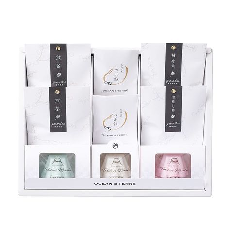 FUJISAN最中(水色)1.85g×2、FUJISAN最中(白)1.85g×2、FUJISAN最中(赤)1.85g×2、粒あん35g×4、鹿児島県産 かぶせ茶ティーバッグ2g×10、静岡県牧之原産 深むし茶ティーバッグ2g×10、静岡県産 煎茶ティーバッグ2g×10×2 ※もち米100%(国産)最中種
