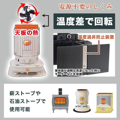 ストーブの熱をエネルギーに変換して回転するので、電源なしで使用することができます。